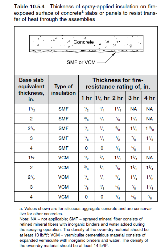 PCI Figure 10.9.1 shows the thickness of various fire-protection materials required for fire endurances up to 4 hours. The values shown are based on a critical steel temperature of 1000 ˚F, that is, a stress-strength ratio (fs/fy) of about 65%. Values in Fig. 10.9.1(b) are applicable to concrete or dry-pack mortar encasement of structural steel shapes used as brackets or lintels.