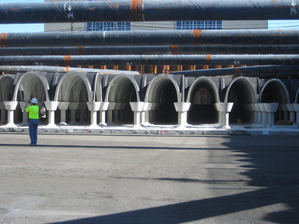 Delta Precast was contracted by Rotondo Environmental Solutions to design a 50,000 gallon underground cistern which will collect and reuse rainwater to irrigate the park’s lawn and plants. Two cistern (stormPod) systems were designed for the project. The two systems have interior height of 10ft and 8ft respectively, both systems consist of 360 degree, 180 degree modules, pedestal supports on precast floor and parameter soil retaining units. Structural design of the two systems were based on an equivalent fluid pressure of 60 pcf, fill height of 1ft -18ft, HS-20 live load, ACI 318 and ACI 350. 3.0 lb/cyd of Turf-Stand fibers were used in combination of conventional ASTM A615 grade 60 reinforcing to minimize temperature and shrinkage cracks.